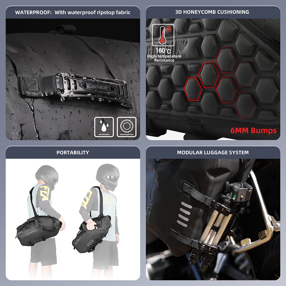 - ✔ Große Kapazität für den täglichen Bedarf: Die wasserdichte Motorradtasche wurde speziell für diejenigen entwickelt, die gerne mit dem Motorrad reisen und Outdoor-Abenteuer erleben. 2 Seitentaschen mit insgesamt 48L Fassungsvermögen, um Ihre täglichen Bedürfnisse zu erfüllen.